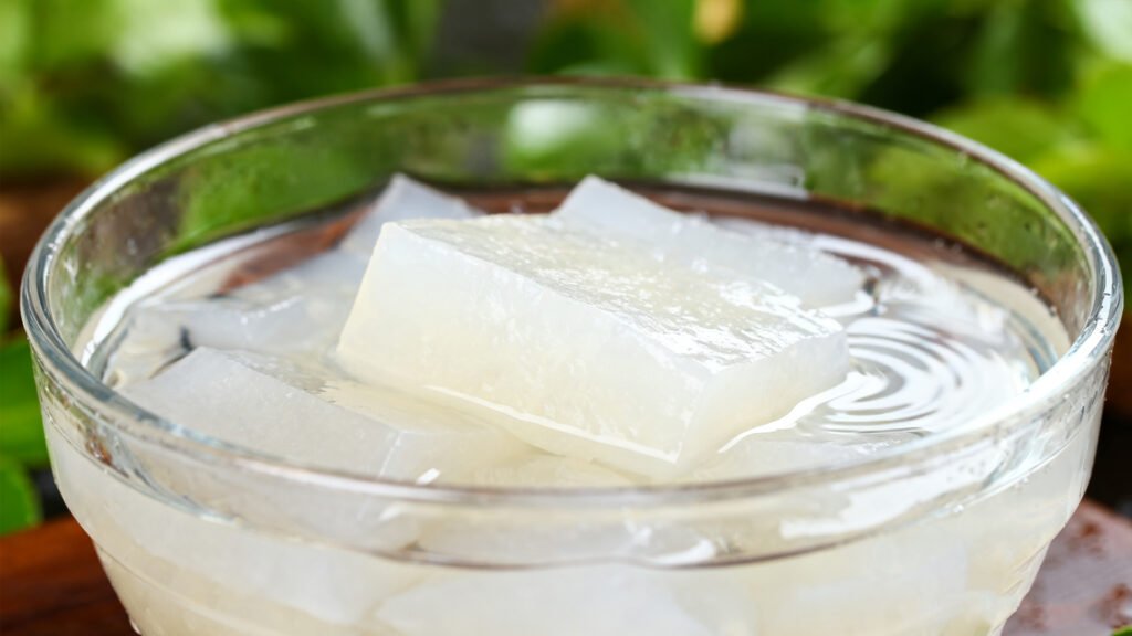 Konnyaku jelly, also known as konjac jelly or konnyaku-kan, is a popular dessert in Japan. It is made by combining konnyaku flour with water, sugar, and flavorings, and then solidifying the mixture into a jelly-like consistency. Konnyaku jelly has a smooth and elastic texture, and it is often served in bite-sized cubes or molded into decorative shapes. It comes in a variety of flavors, including fruit flavors like strawberry, grape, and peach. Konnyaku jelly is enjoyed as a refreshing and low-calorie dessert option.