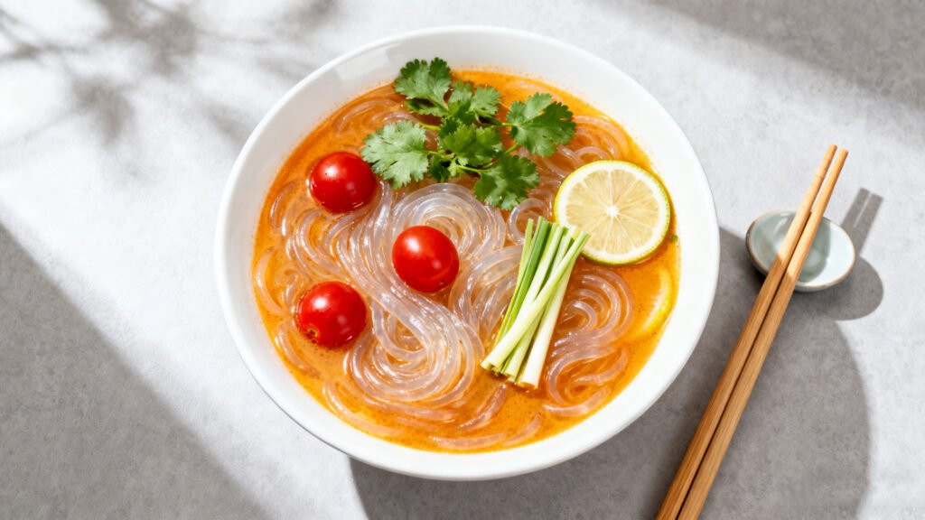 Shirataki noodles, also known as konjac noodles, are made from the konjac plant’s root, native to East Asia.  They are composed mainly of 97%water and 3% glucomannan, a type of dietary fiber.  Shirataki noodles have a unique texture and absorb the flavors of the dishes they are prepared with.  While they have been a staple in Asian cuisine for centuries, they have gained popularity worldwide as a low-calorie substitute for traditional noodles.
