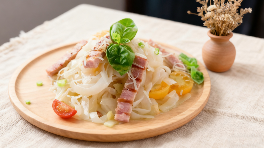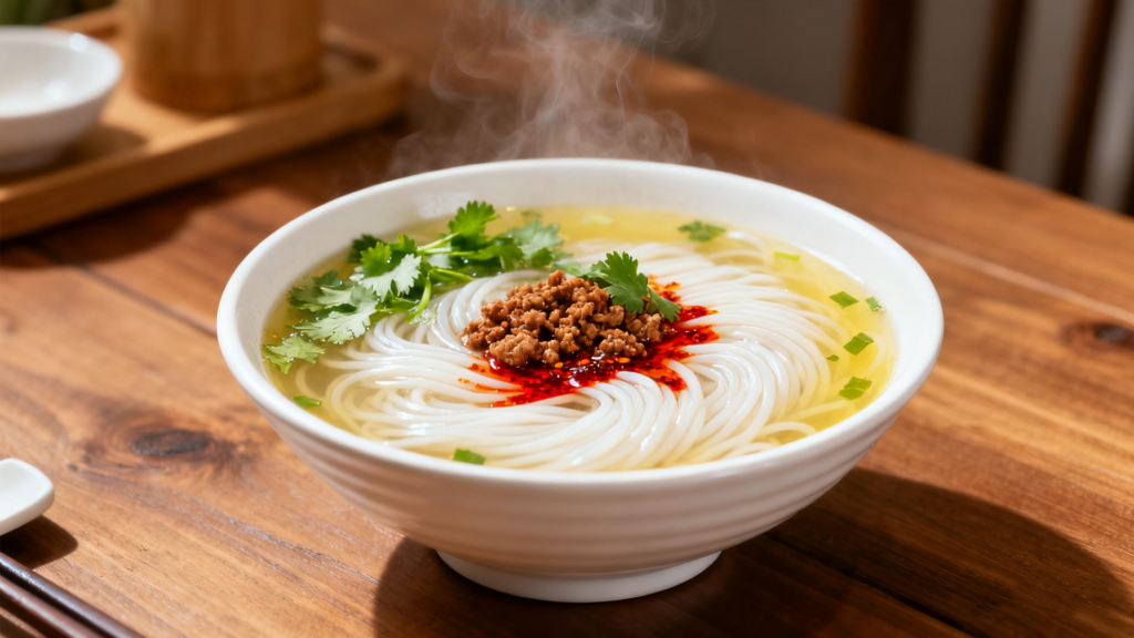 Rice noodles are a staple in many Asian cuisines and are made from a mixture of rice flour and water. The process involves grinding rice into a fine powder, mixing it with water to form a dough, and then extruding or rolling the dough into the desired shape.